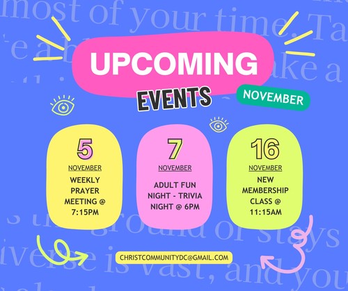 We would love to keep you up to date on all the happenings within our church. Whether you're looking for fellowship, opportunities to volunteer, or just time spent within the church - we'll have all the information you need here!